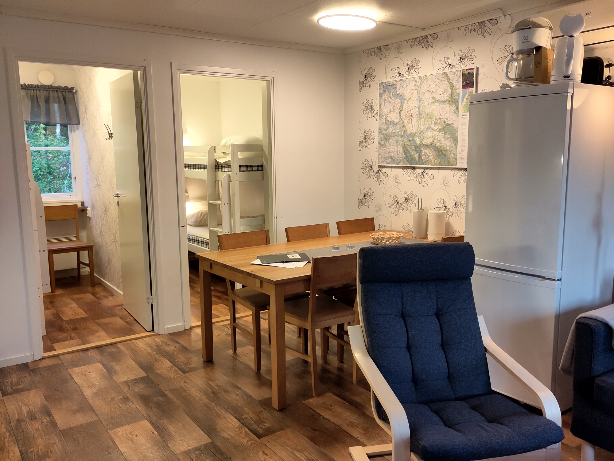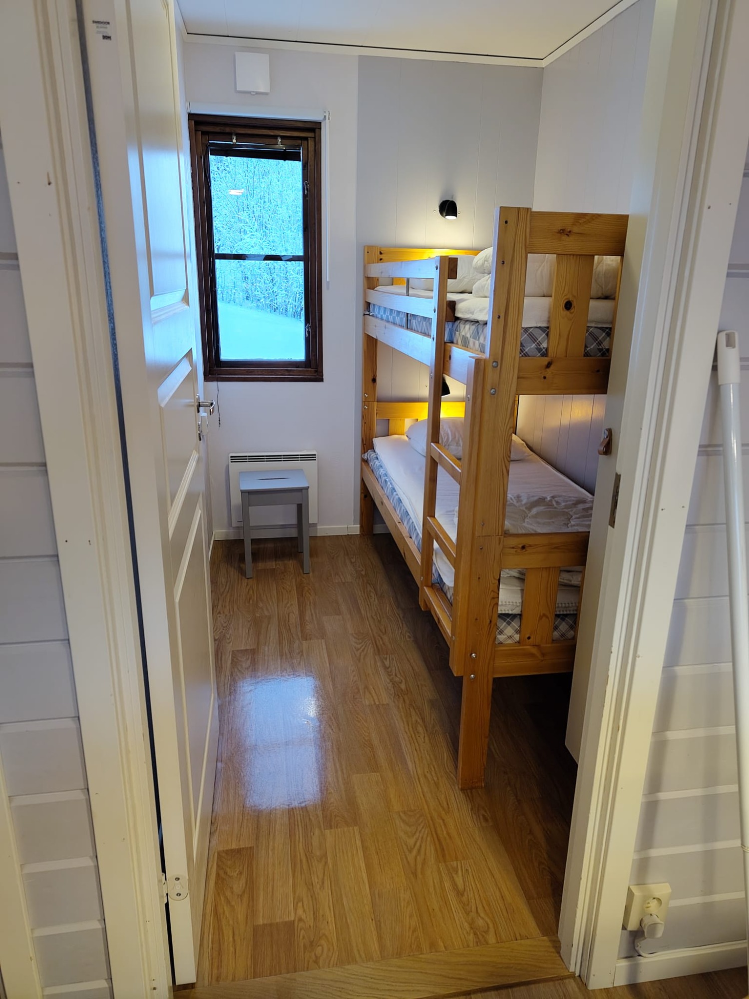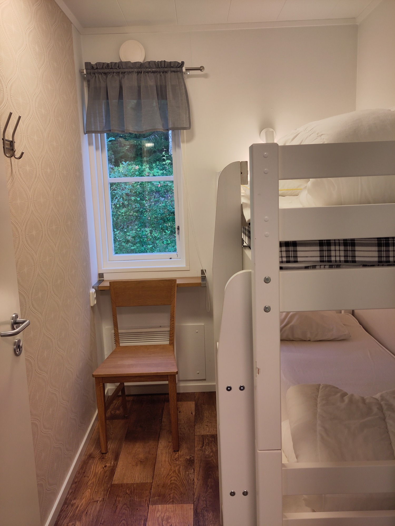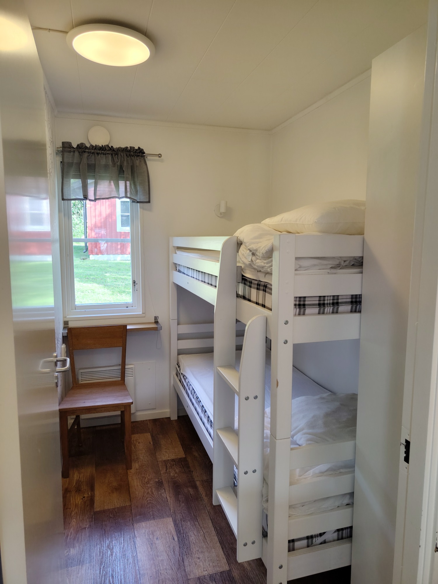 Här nedan kan du se bilder från våra stugor och lägenheter. Alla stugor har torkskåp i hallen, fullt utrustade kök med halv kyl och halv frys, ett badrum/toalett med dusch, tre sovrum (ett sovrum med två enkelsängar och två sovrum med en våningssäng i varje), matgrupp, soffgrupp och tv. Samtliga stugor och lägenheter är 46 kvm stora och ligger i markplan (obs att stuga 10 har en liten "backe" upp samt att stuga 12 har några trappsteg upp utomhus från parkeringen). Motorvärmaruttag finns på samtliga stugor (EJ för laddning av elbil!) och 16 och 38 har elbilsladdare (200 SEK/vistelse).