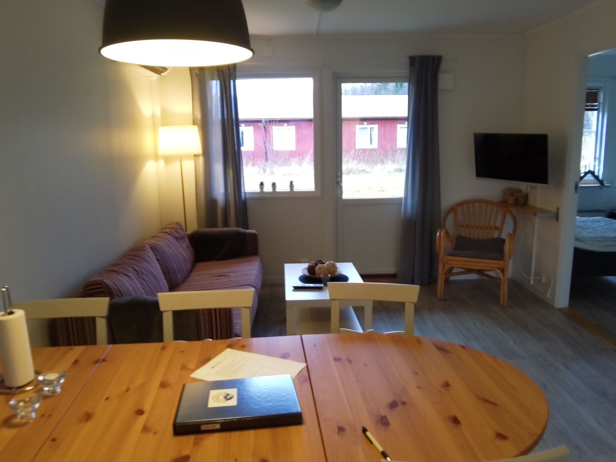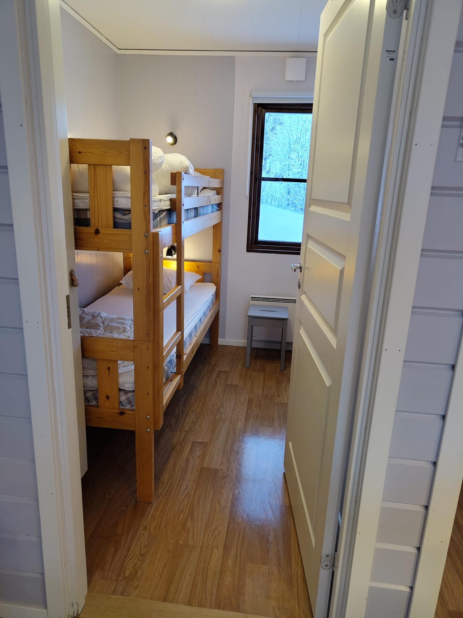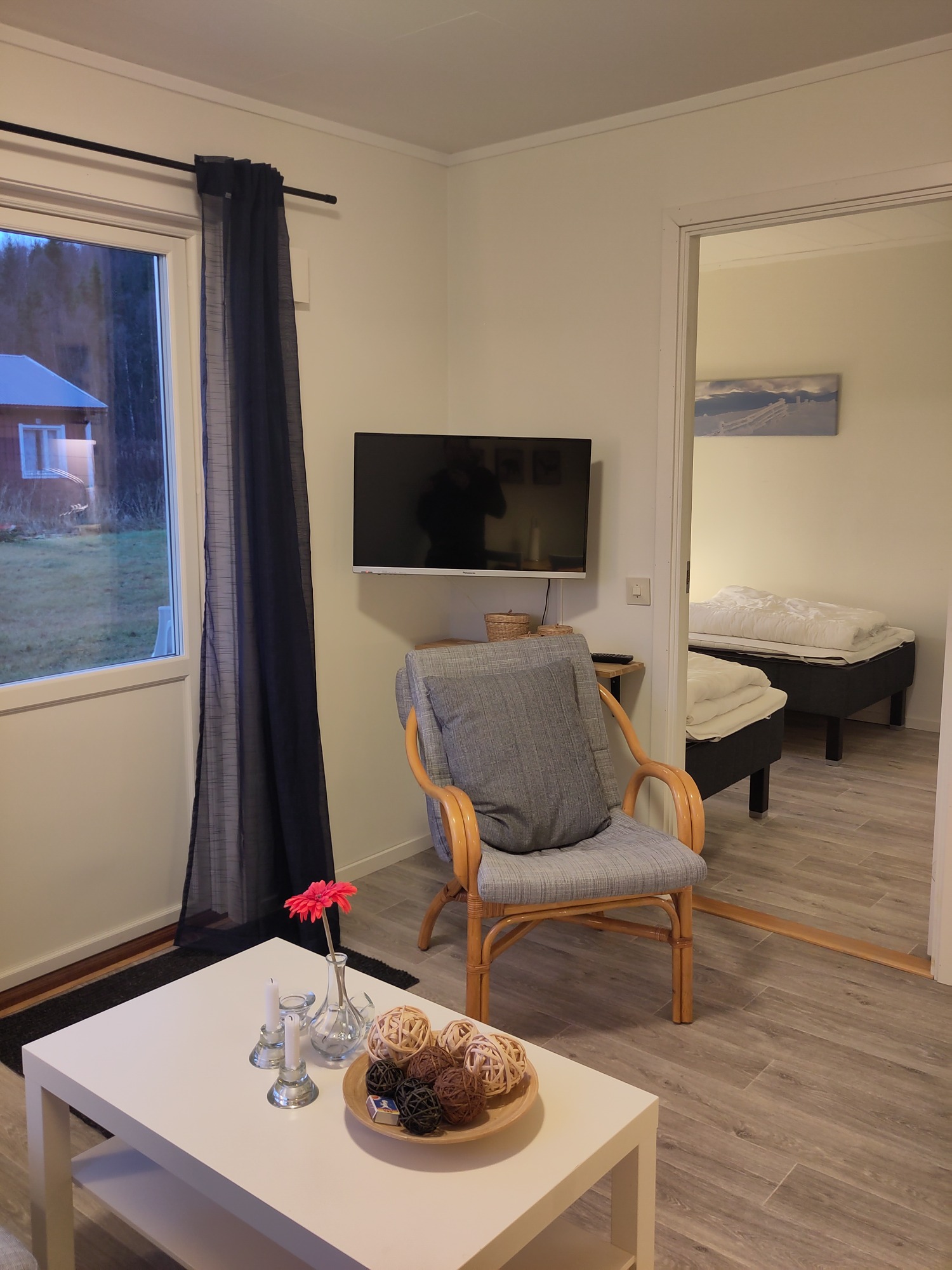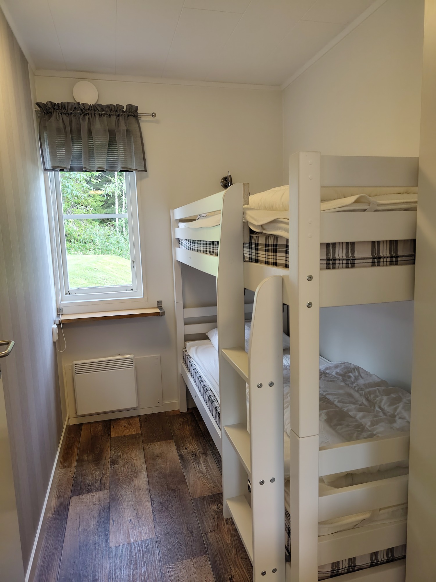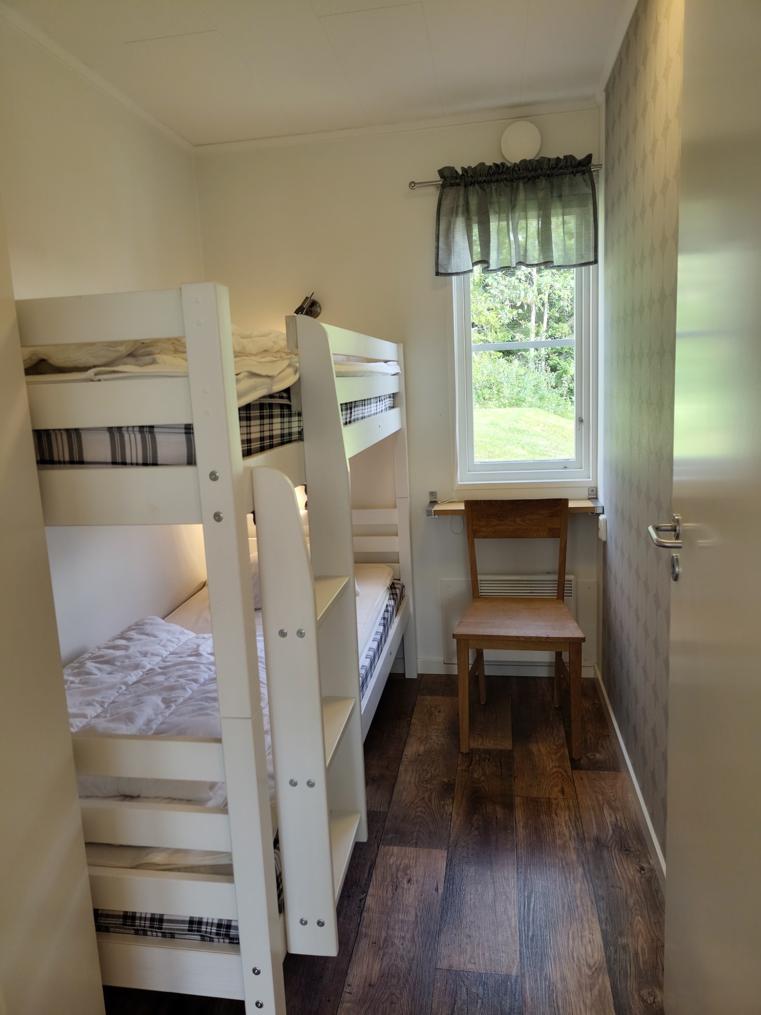 Här nedan kan du se bilder från våra stugor och lägenheter. Alla stugor har torkskåp i hallen, fullt utrustade kök med halv kyl och halv frys, ett badrum/toalett med dusch, tre sovrum (ett sovrum med två enkelsängar och två sovrum med en våningssäng i varje), matgrupp, soffgrupp och tv. Samtliga stugor och lägenheter är 46 kvm stora och ligger i markplan (obs att stuga 10 har en liten "backe" upp samt att stuga 12 har några trappsteg upp utomhus från parkeringen). Motorvärmaruttag finns på samtliga stugor (EJ för laddning av elbil!) och 16 och 38 har elbilsladdare (200 SEK/vistelse).