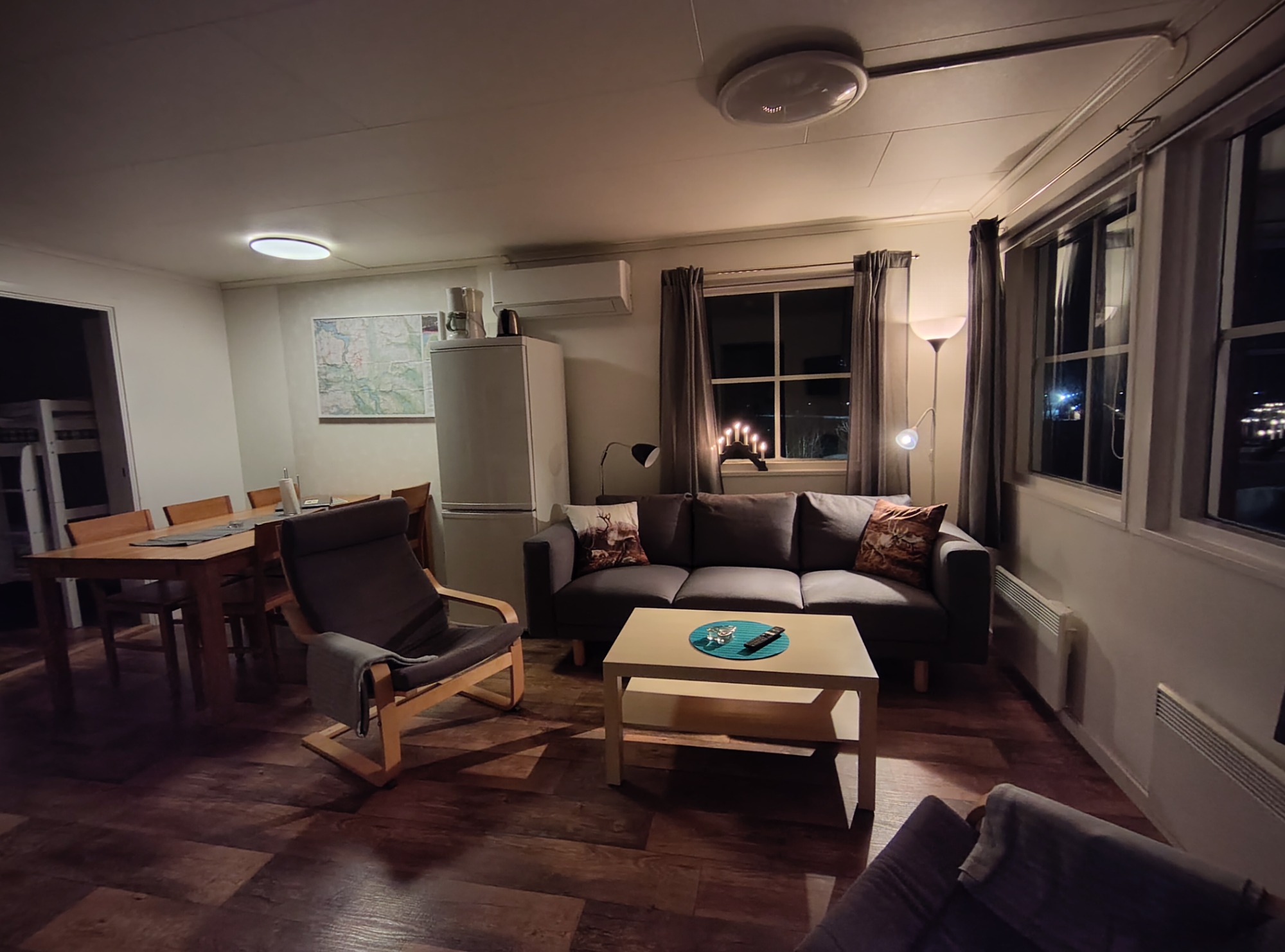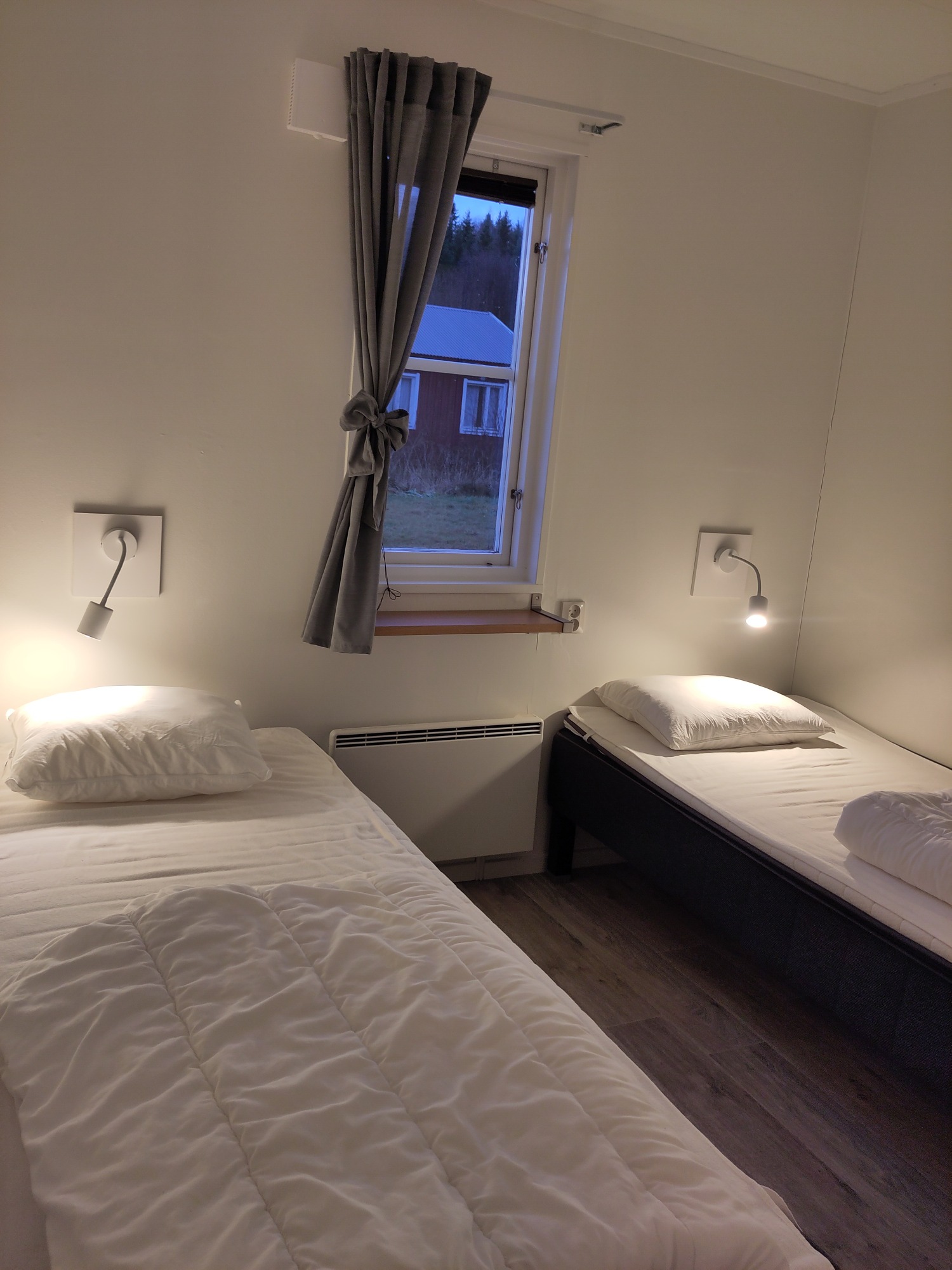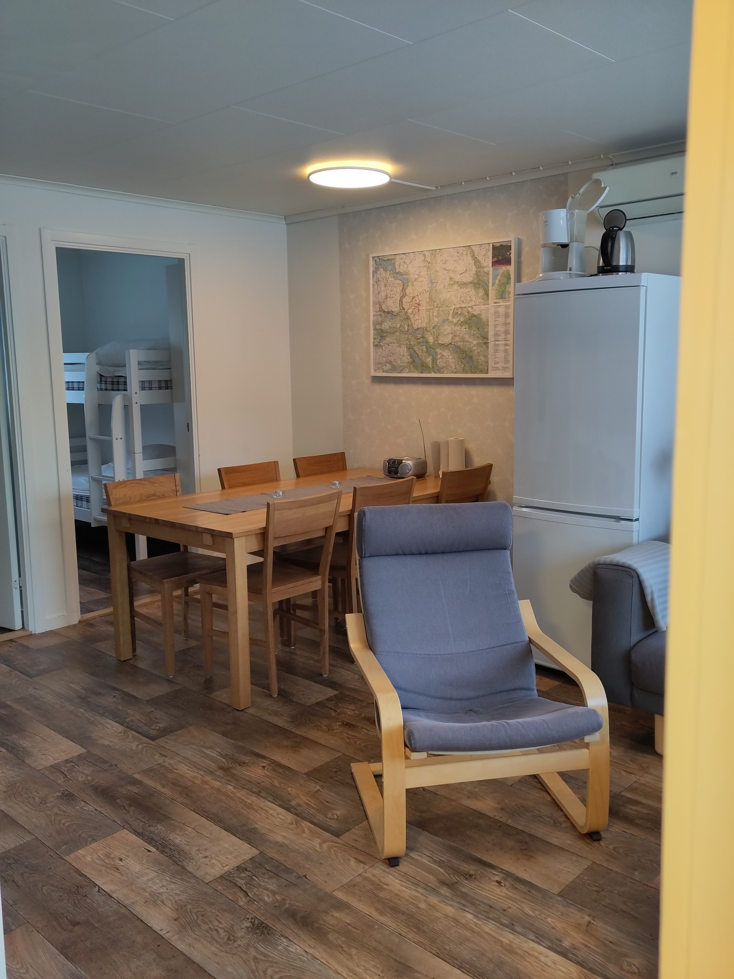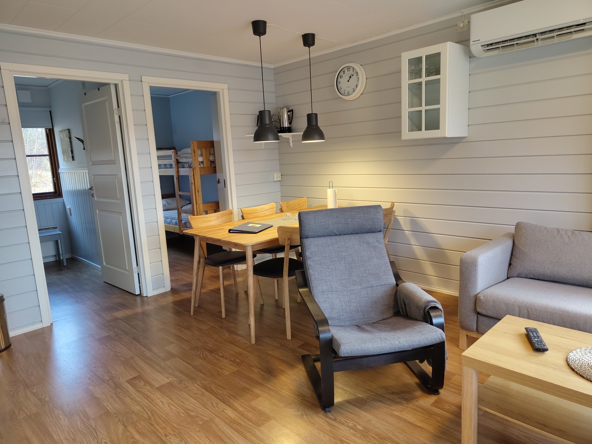 Här nedan kan du se bilder från våra stugor och lägenheter. Alla stugor har torkskåp i hallen, fullt utrustade kök med halv kyl och halv frys, ett badrum/toalett med dusch, tre sovrum (ett sovrum med två enkelsängar och två sovrum med en våningssäng i varje), matgrupp, soffgrupp och tv. Samtliga stugor och lägenheter är 46 kvm stora och ligger i markplan (obs att stuga 10 har en liten "backe" upp samt att stuga 12 har några trappsteg upp utomhus från parkeringen). Motorvärmaruttag finns på samtliga stugor (EJ för laddning av elbil!) och 16 och 38 har elbilsladdare (200 SEK/vistelse).