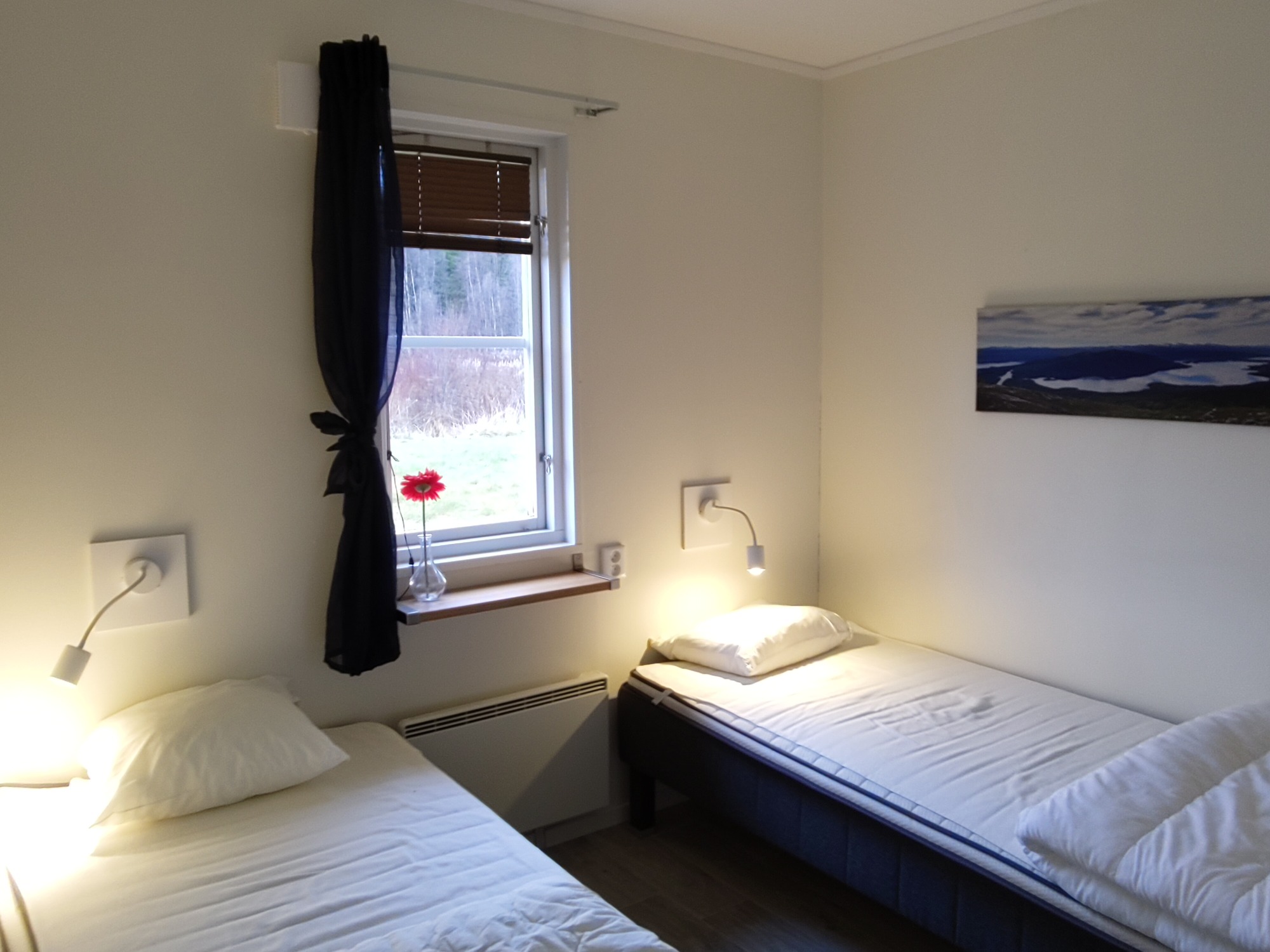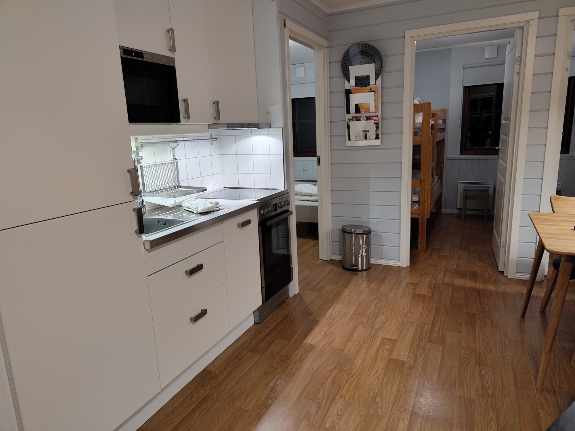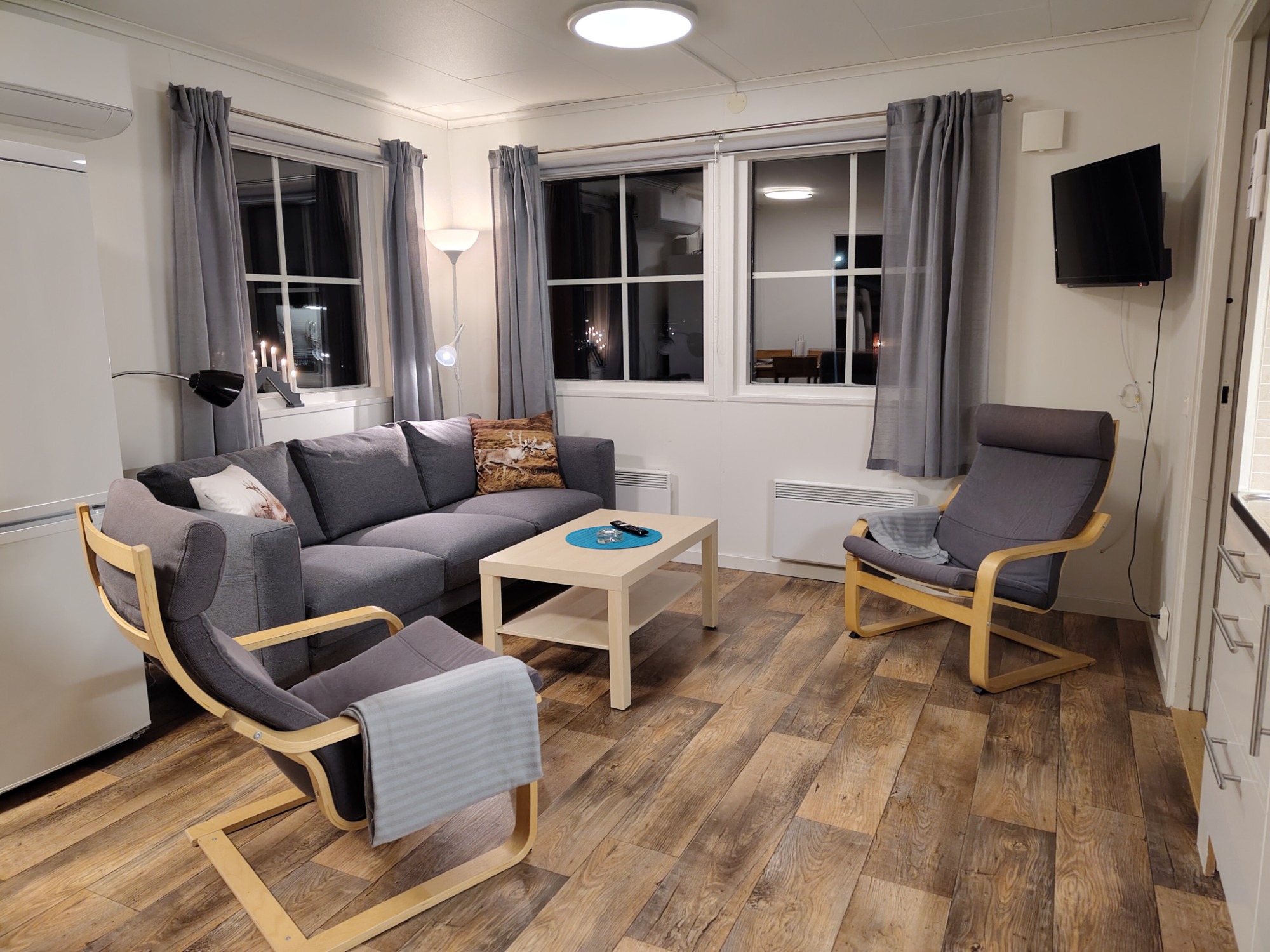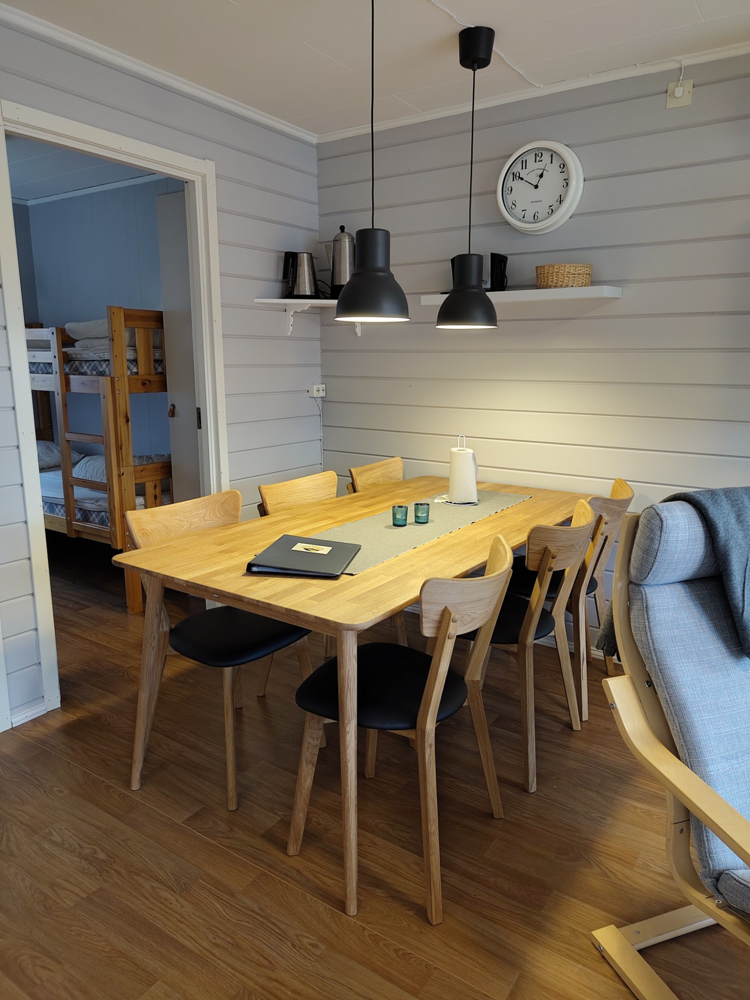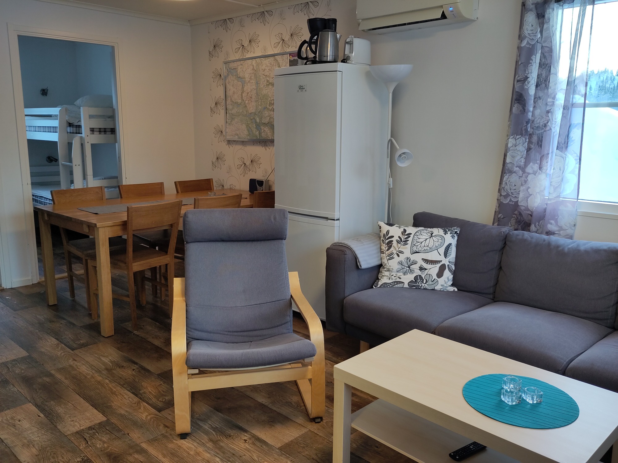 Här nedan kan du se bilder från våra stugor och lägenheter. Alla stugor har torkskåp i hallen, fullt utrustade kök med halv kyl och halv frys, ett badrum/toalett med dusch, tre sovrum (ett sovrum med två enkelsängar och två sovrum med en våningssäng i varje), matgrupp, soffgrupp och tv. Samtliga stugor och lägenheter är 46 kvm stora och ligger i markplan (obs att stuga 10 har en liten "backe" upp samt att stuga 12 har några trappsteg upp utomhus från parkeringen). Motorvärmaruttag finns på samtliga stugor (EJ för laddning av elbil!) och 16 och 38 har elbilsladdare (200 SEK/vistelse).