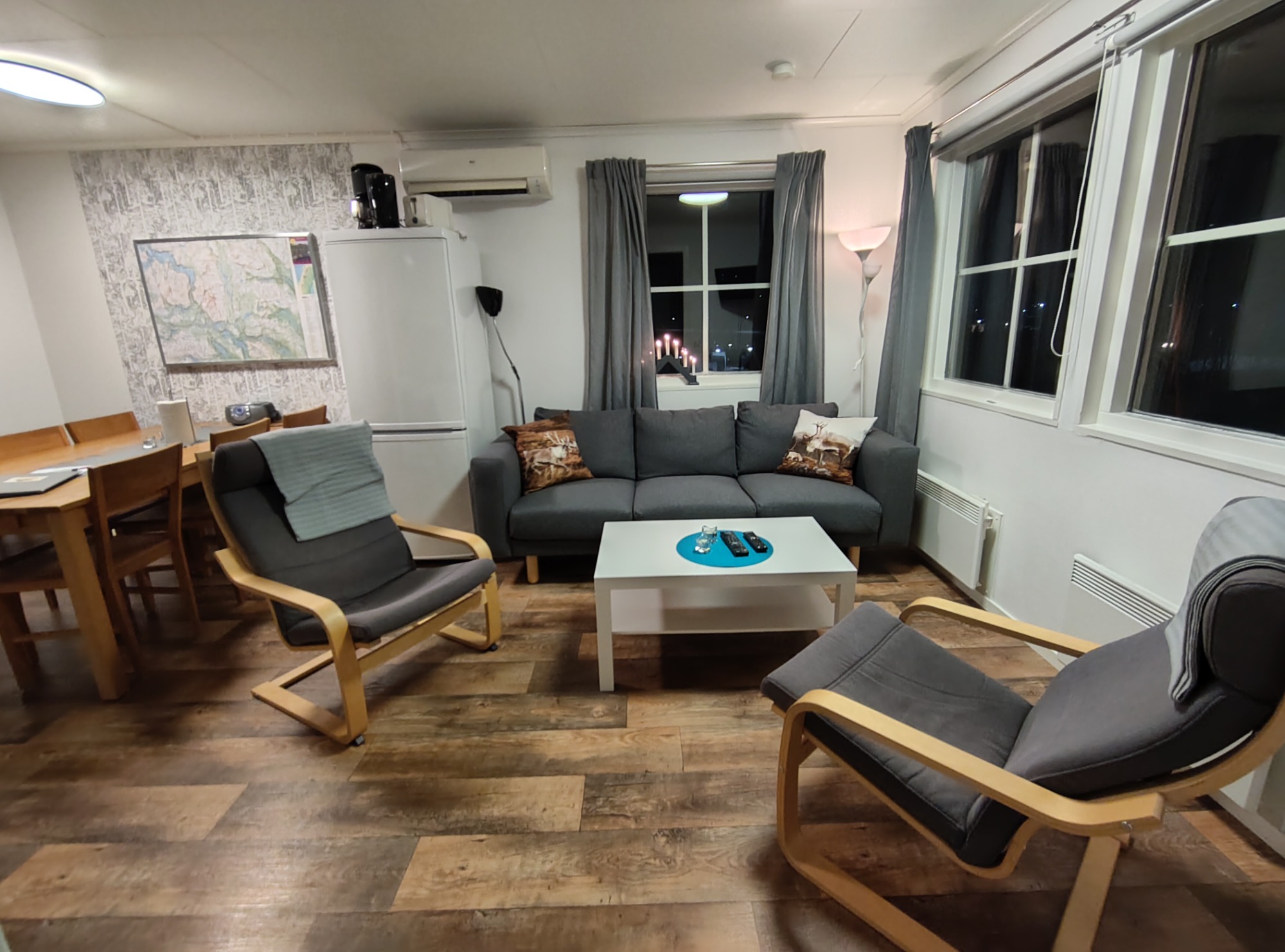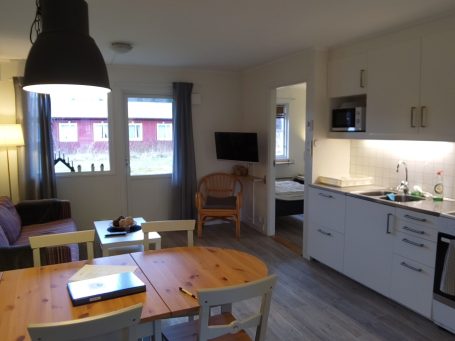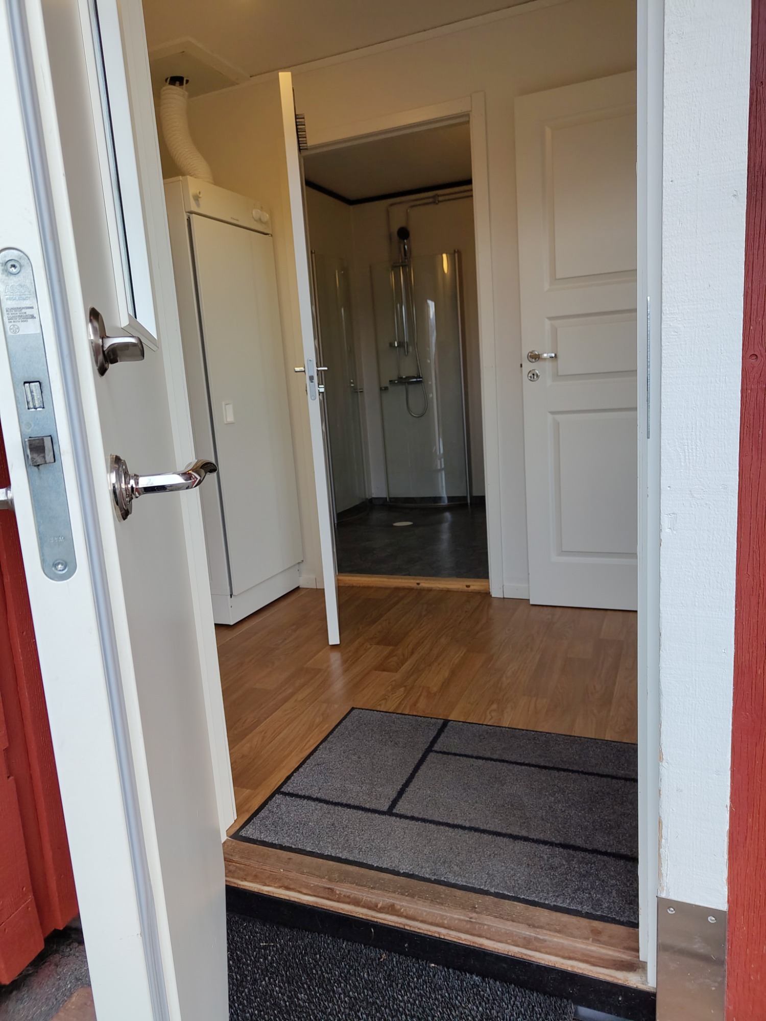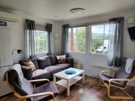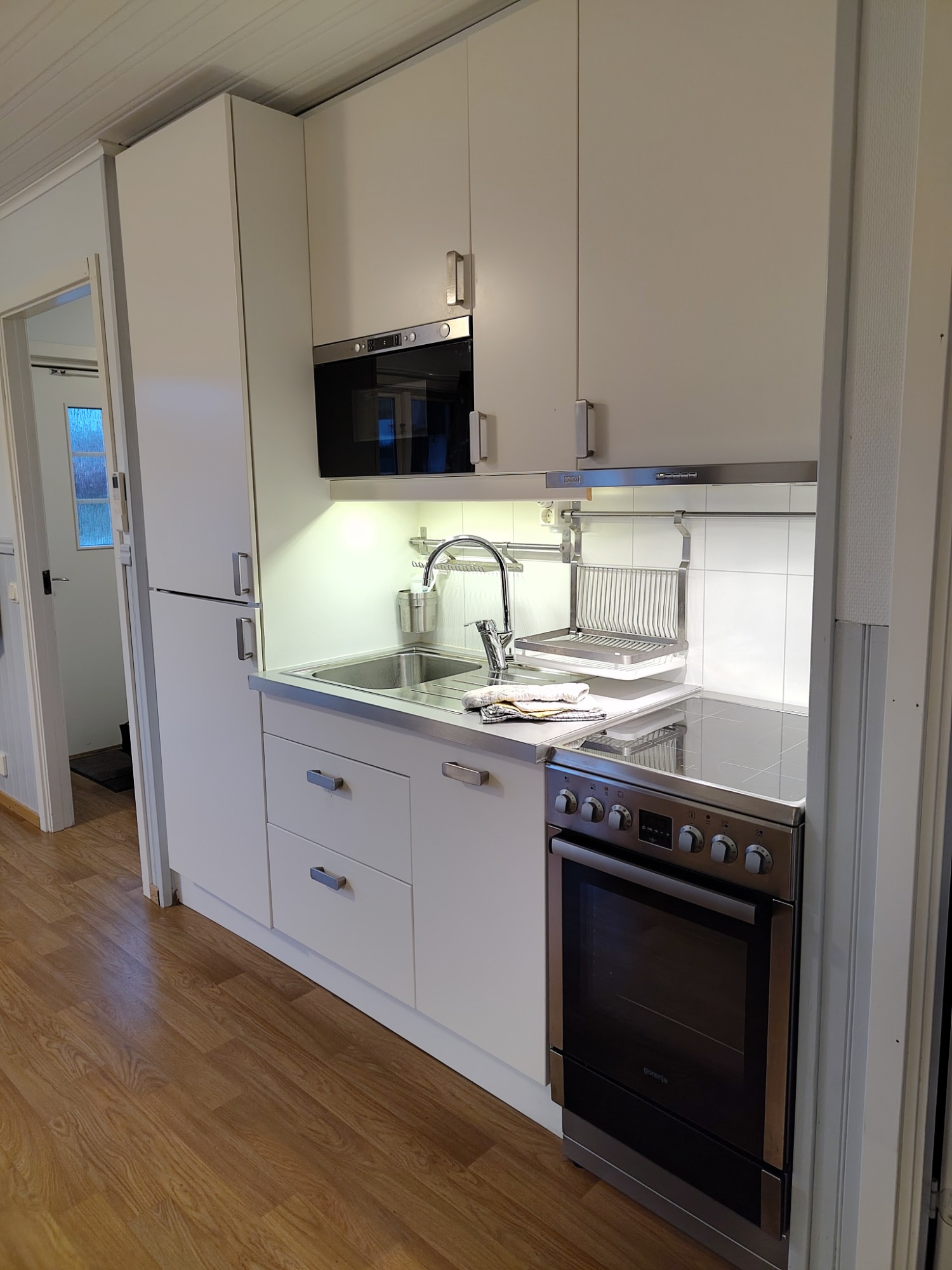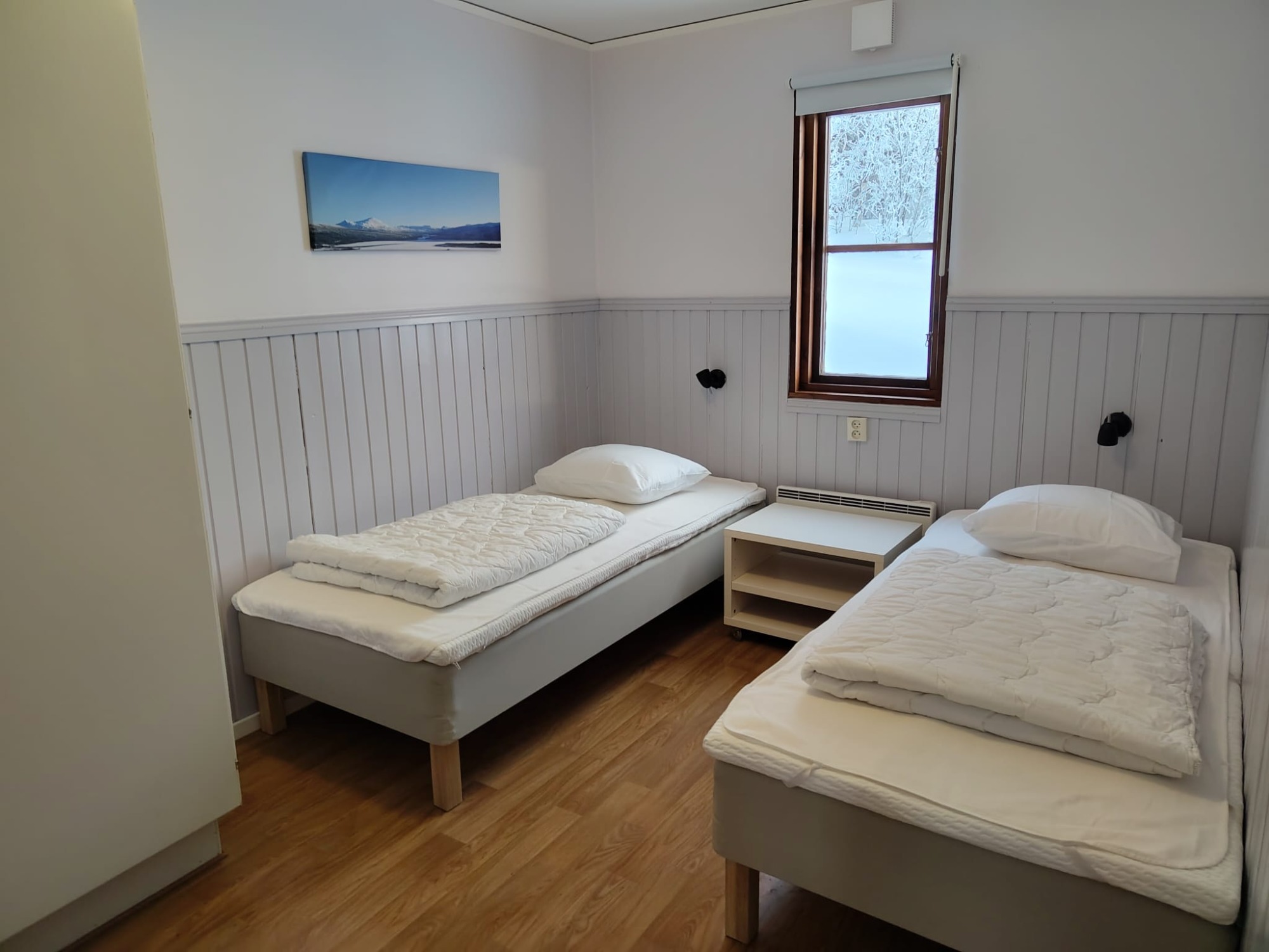 Här nedan kan du se bilder från våra stugor och lägenheter. Alla stugor har torkskåp i hallen, fullt utrustade kök med halv kyl och halv frys, ett badrum/toalett med dusch, tre sovrum (ett sovrum med två enkelsängar och två sovrum med en våningssäng i varje), matgrupp, soffgrupp och tv. Samtliga stugor och lägenheter är 46 kvm stora och ligger i markplan (obs att stuga 10 har en liten "backe" upp samt att stuga 12 har några trappsteg upp utomhus från parkeringen). Motorvärmaruttag finns på samtliga stugor (EJ för laddning av elbil!) och 16 och 38 har elbilsladdare (200 SEK/vistelse).