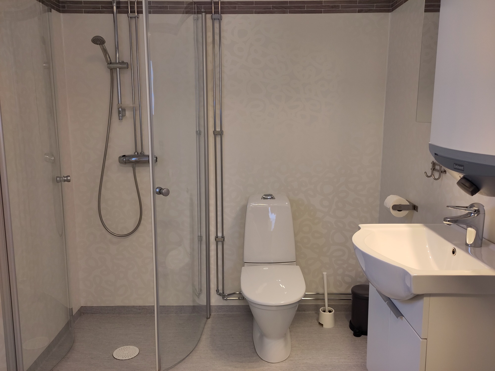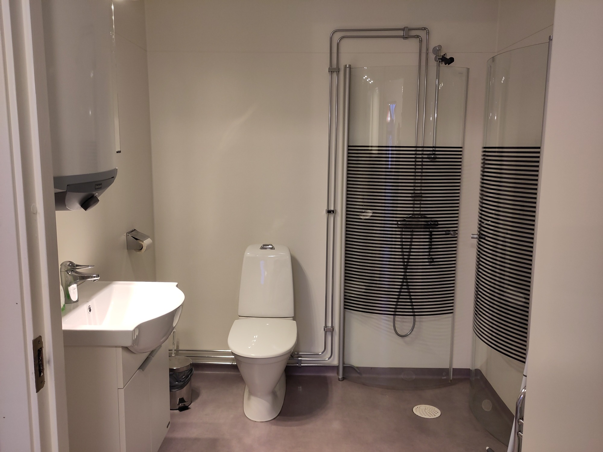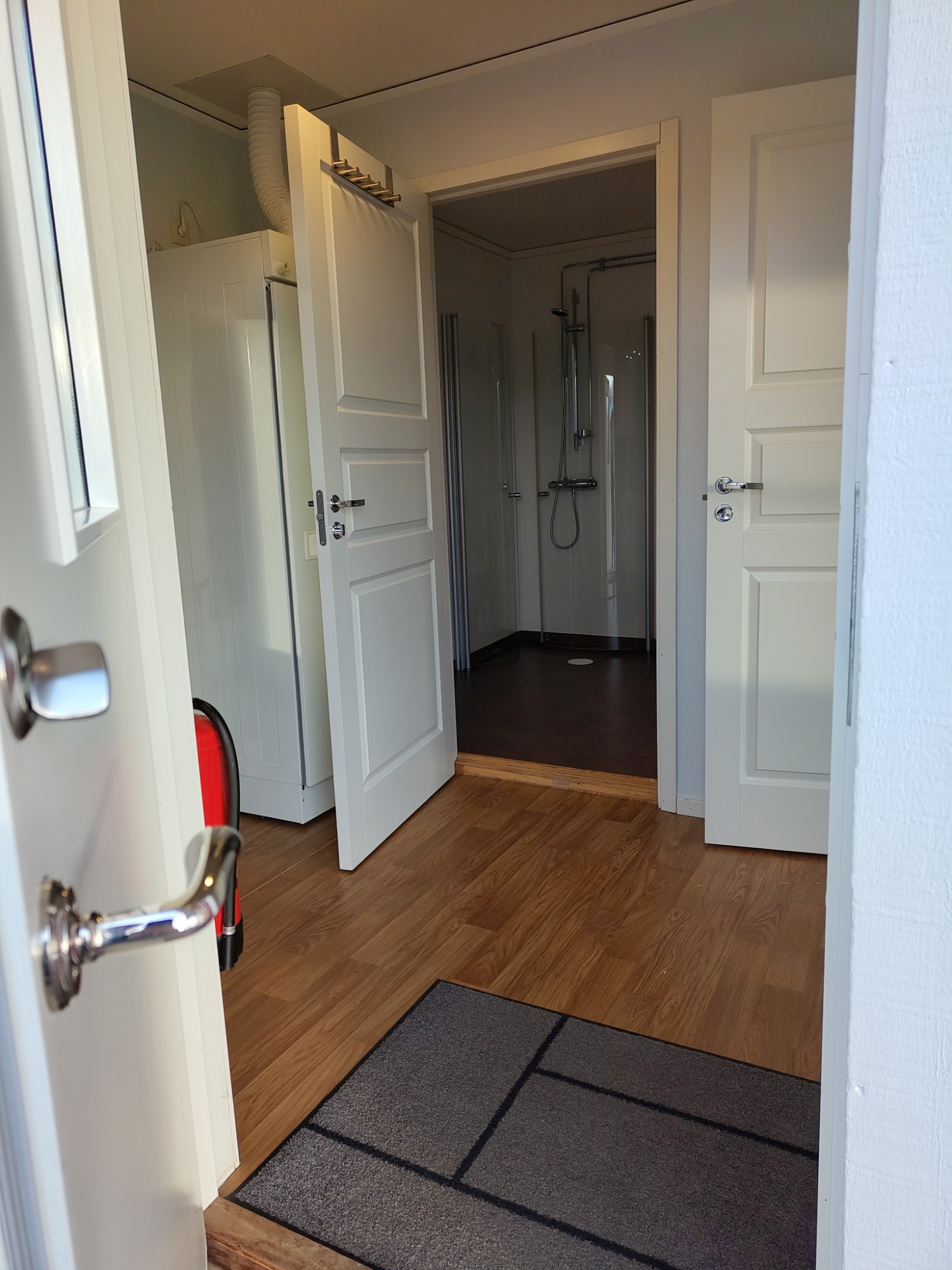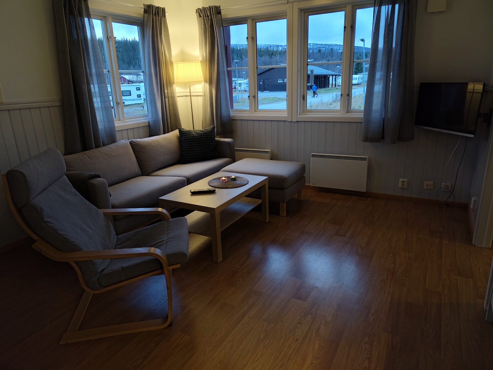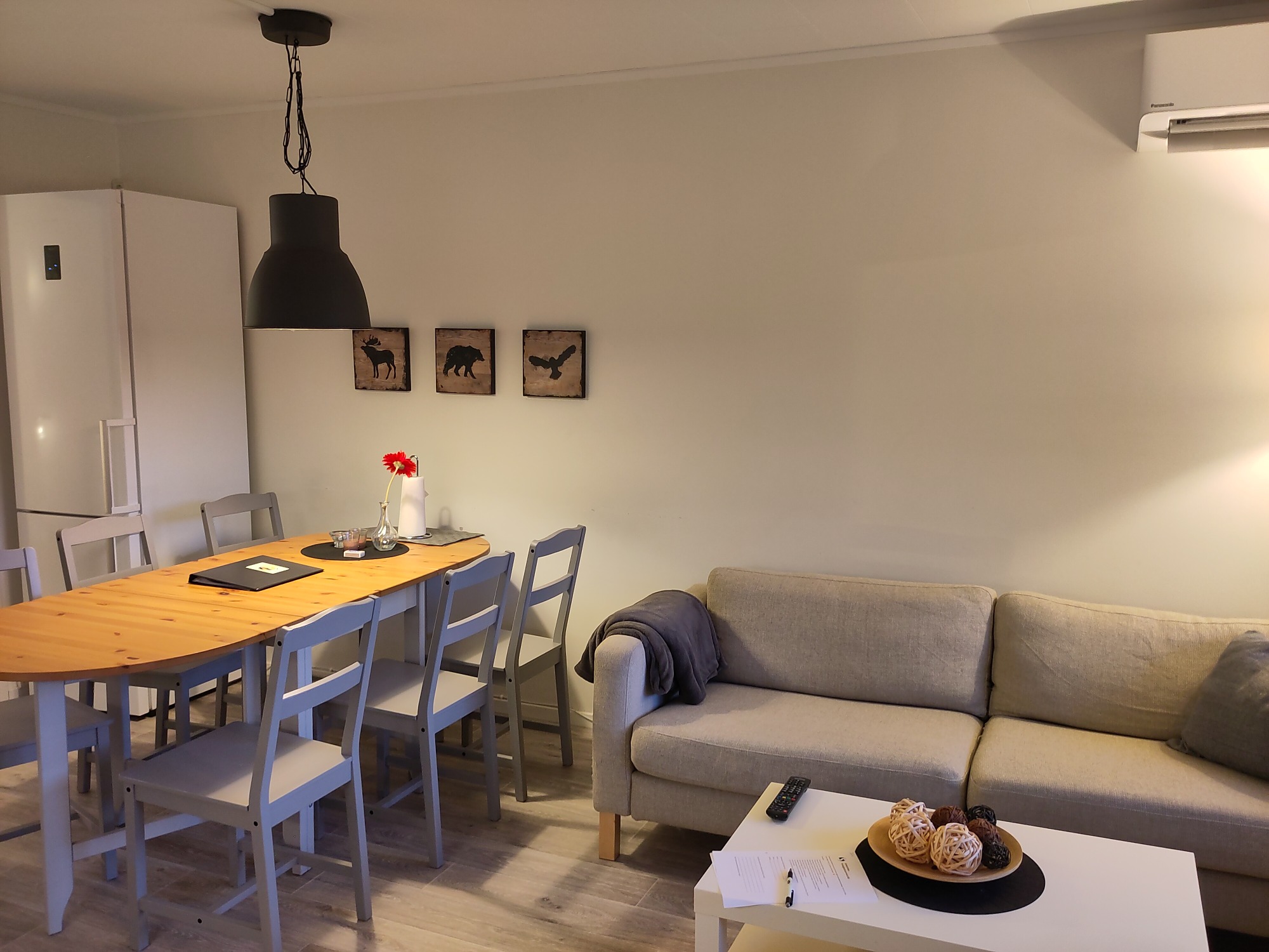 Här nedan kan du se bilder från våra stugor och lägenheter. Alla stugor har torkskåp i hallen, fullt utrustade kök med halv kyl och halv frys, ett badrum/toalett med dusch, tre sovrum (ett sovrum med två enkelsängar och två sovrum med en våningssäng i varje), matgrupp, soffgrupp och tv. Samtliga stugor och lägenheter är 46 kvm stora och ligger i markplan (obs att stuga 10 har en liten "backe" upp samt att stuga 12 har några trappsteg upp utomhus från parkeringen). Motorvärmaruttag finns på samtliga stugor (EJ för laddning av elbil!) och 16 och 38 har elbilsladdare (200 SEK/vistelse).